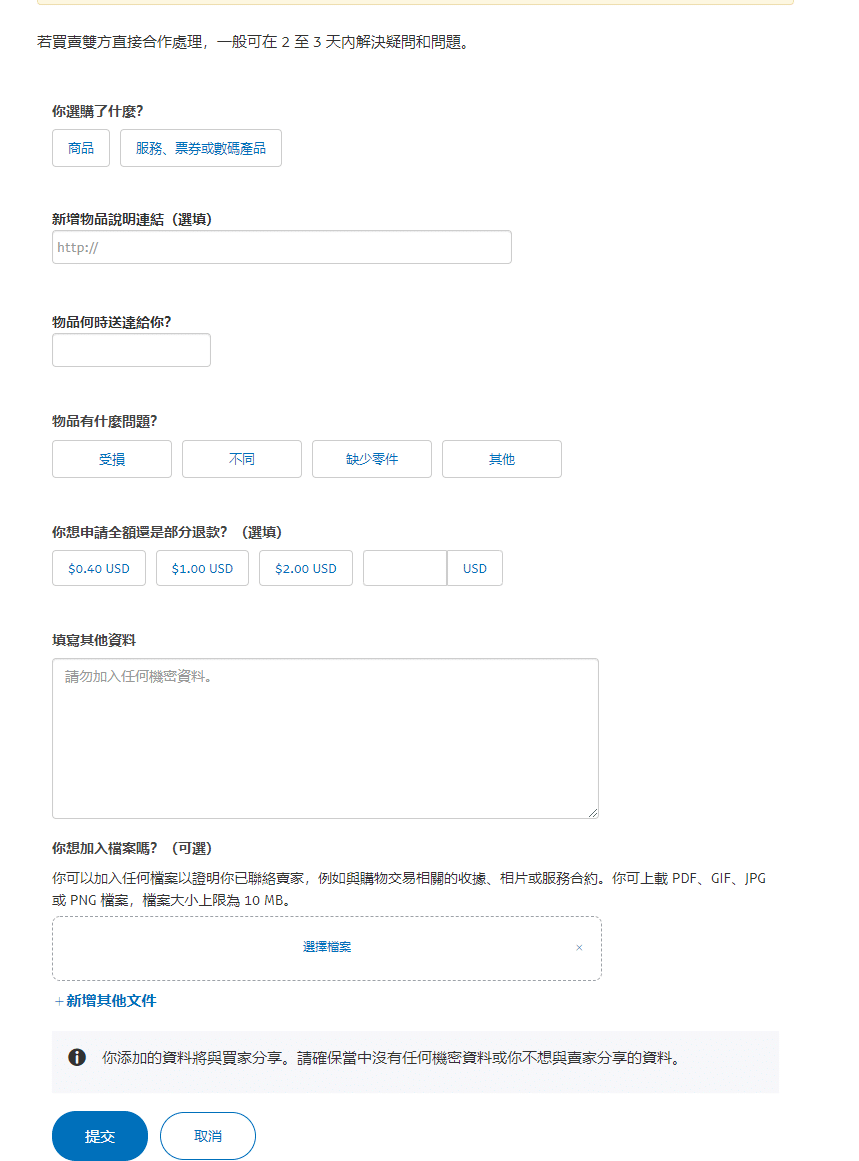 如果物品完全不可用,比如跑路,可以选择已损坏,如果是服务有问题但不给退款,可以选其他,然后详细描述有什么问题即可。接着是申请全额退还是部分,一般都是全额。